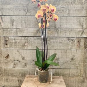 This Bromeliad has arching, swordlike spiny cream and green leaves, held in a dense rosette, with the inedible fruit held in the centre on a sturdy stalk.Thrives in full sun. Never overwater, keep compost moist but not wet. Mist in summer occasionally with dilute fertiliser. Min 10. C 50.F