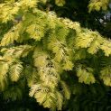 (Golden Dawn Redwood) Lovely, tall, conical deciduous tree of rapid growth. Golden yellow feathery foliage which becomes orange and gold in autumn. Red-brown, shredding bark. Suitable for most soil and site conditions. 10 year height 5m. Ultimate height 16-20m.