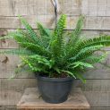 Masses of graceful, drooping fronds in a rich green. Likes indirect light and will do well in a shady corner of the house. Will scorch in direct sun. Keep compost evenly moist and mist frequently.Min 10C. Purifies the air.
