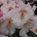 Medium evergreen shrub. Pink buds open to creamy white flowers with some speckling in May. Moist acid soil in sheltered, shaded position. Height and width : 1.5 m