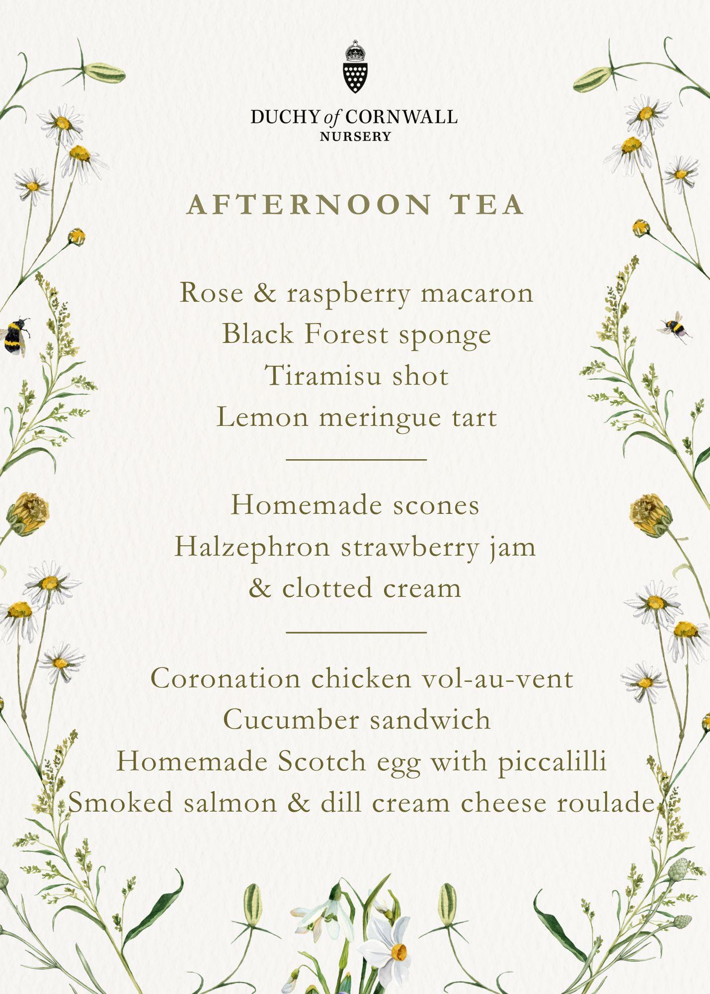 Our signature Afternoon tea is served Thursday, Friday and Saturday in The Orangery from 2.30pm and must be booked at least 36 hours in advance. If you are booking an Afternoon Tea with a Duchy of Cornwall Nursery gift voucher, please call us on: 01208 872668 to make a reservation.