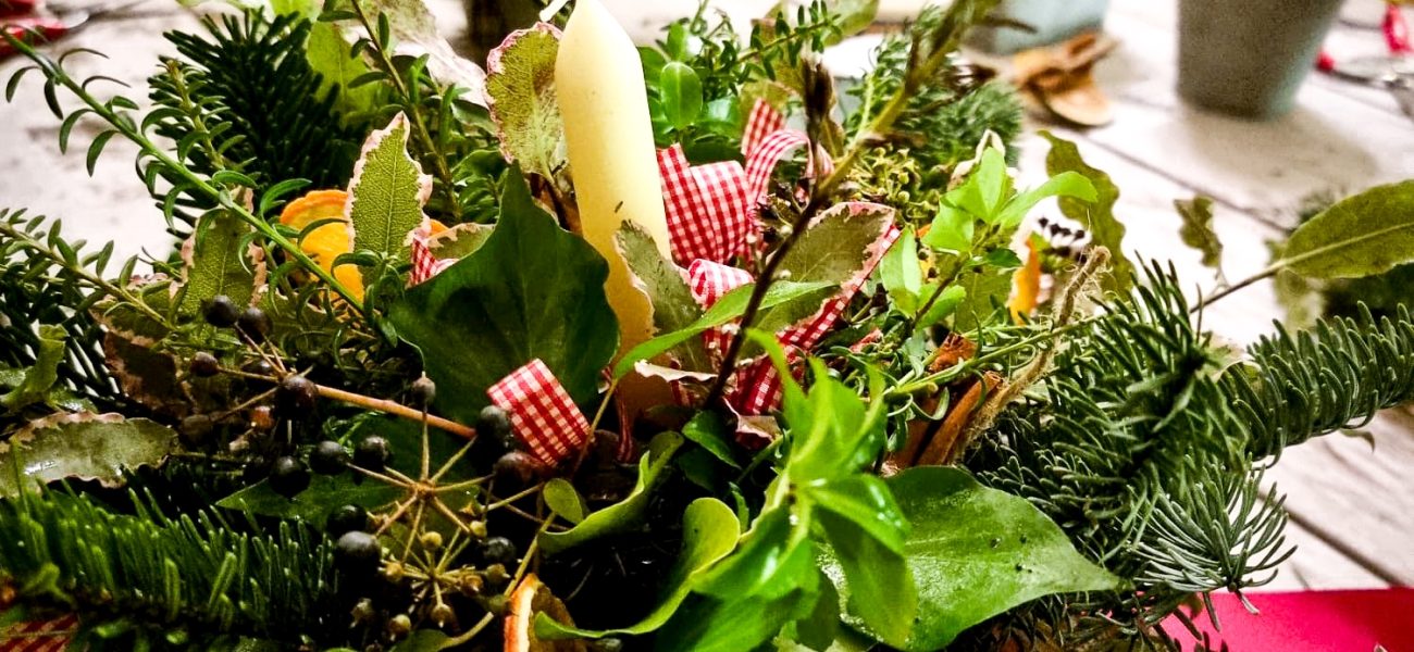 Spend a couple of fun hours making a festive candle table decoration. You’ll have a choice of pots, fresh foliage, natural decorations and a candle!