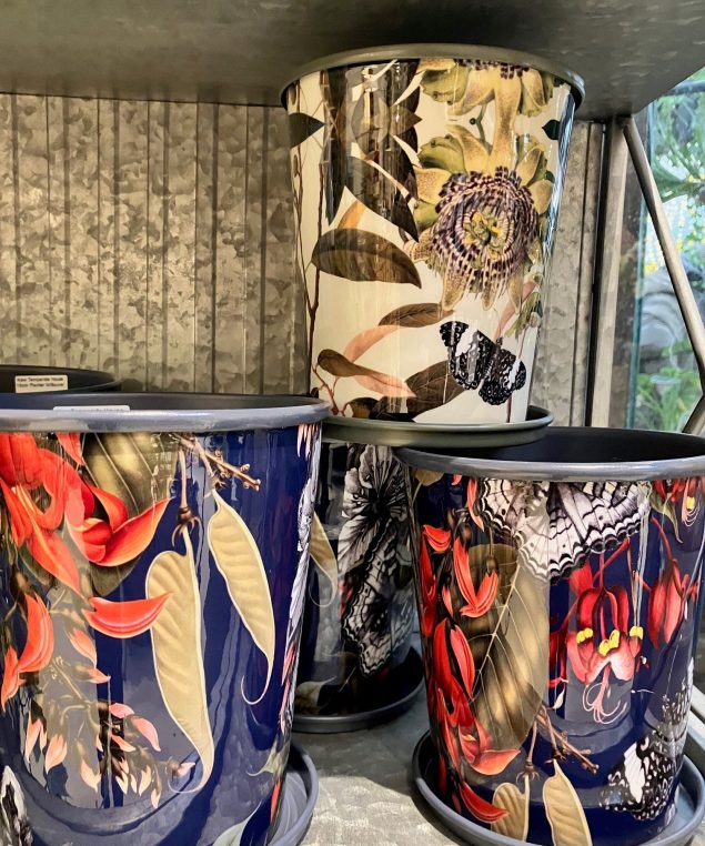 Planters and pots, find a wide array of styles and designs including these Royal Botanic Gardens Kew ‘Eclectic Orangery’ Collection. Turning the spotlight on charming prints from the Kew archives, this carefully curated edit uses a dark and moody palette, punched with zesty citrus hues. Hand-finished, this metal planter and saucer crafted in India, makes a stylish statement.