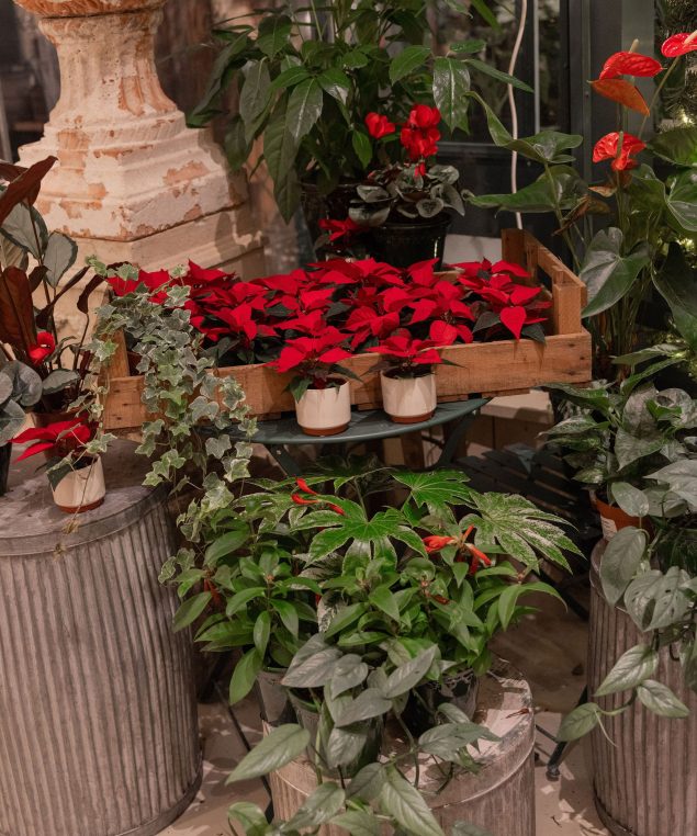 Flowering gifts from potted hellebores and hyacinths to festive favourites like a red or white poinsettia, coming in all sizes including a miniature variety.