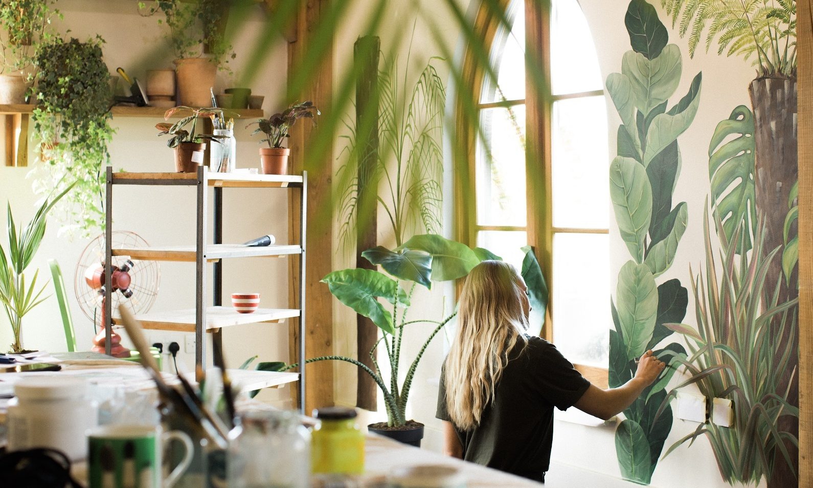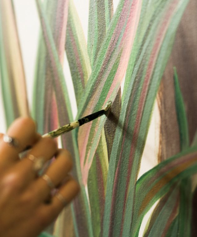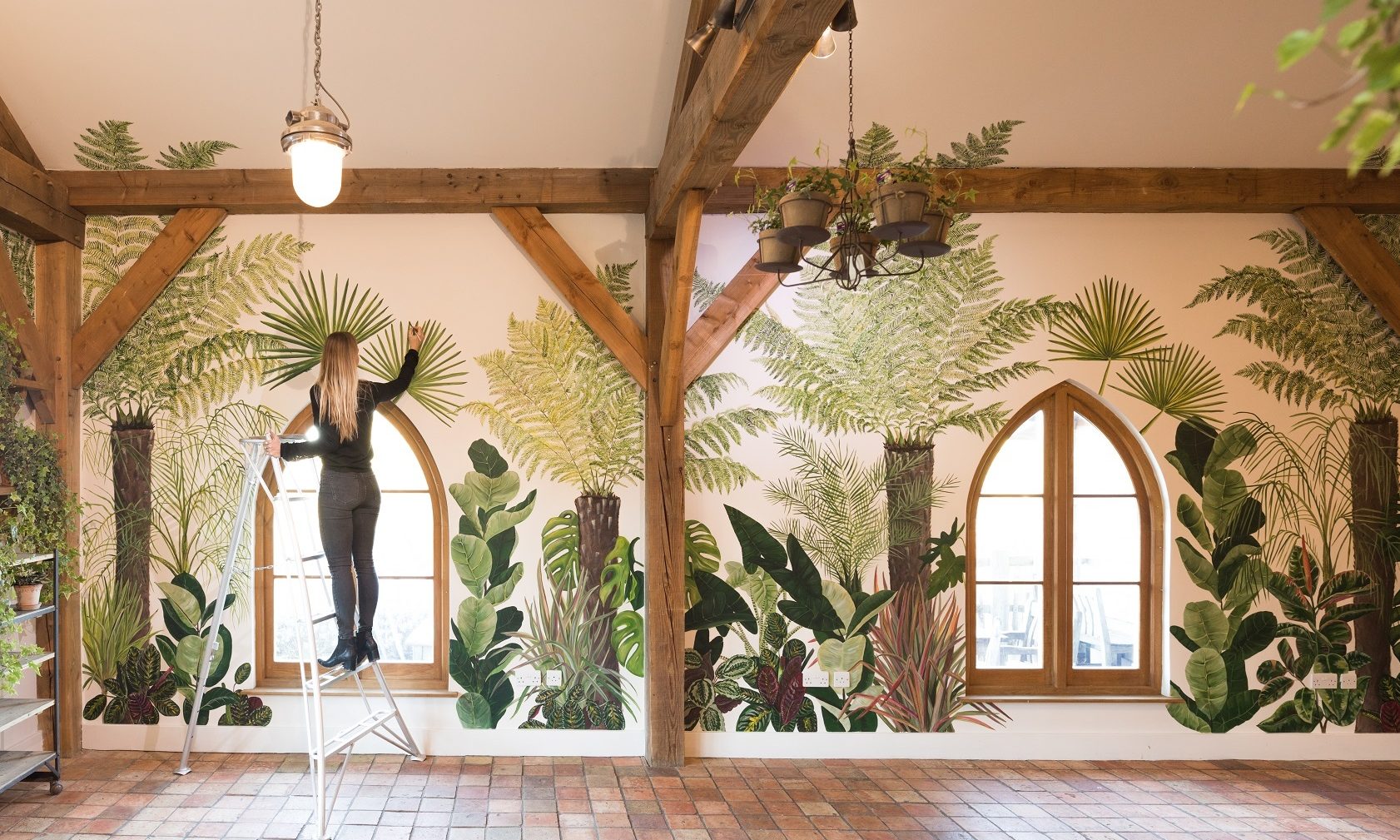 A conversation started between Flo and the Nursery in early January 2021 about the possibility of creating a mural on one of the Cafe walls. The idea was to create a beautiful botanical celebration of the amazing plant life that can be found at the Nursery.
