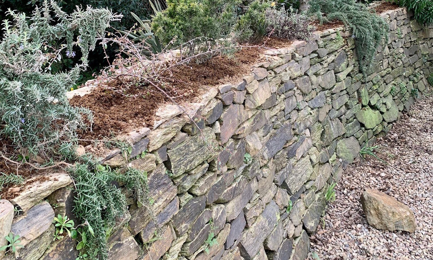 Shelter can be provided on various scales, from massive tree belts, to hedges, fences, or even planting in the lee of a large shrub. A Cornish hedge is a traditional and effective shelter for plants and livestock. It is actually a thick stone wall, wider at the bottom and filled with earth, and may have hedging plants or trees planted on the top to increase its wind-breaking height. Ancient Cornish hedges develop a rich diversity of flora over their lifespan and it is gratifying to see that more are being built in current times. Semi-permeable structures which filter and reduce wind are most effective. A temporary windbreak such as mesh will help plants establish initially and can help a newly planted hedge get off to a good start.
