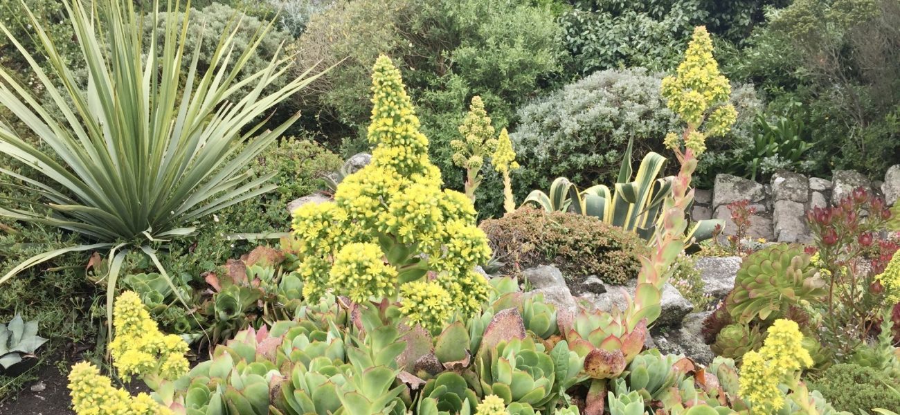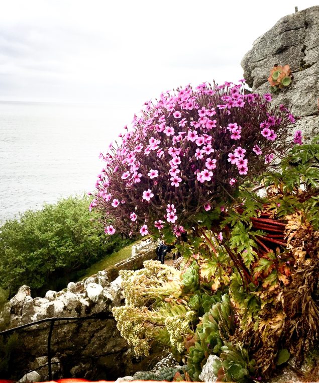 Gardens on the south coast face different climate challenges, often being in mild and sheltered valley sites, virtually frost free and unaccustomed to howling gales. Some of these gardens have semi tropical planting and when a rare east wind blows, as in the Beast from the East in 2018, they can suffer significant damage. Others may not be in sheltered valleys but on the side of a cliff, or virtually on the beach. Here, as well as salt spray, plants must cope with soil which is little more than sand and stones, and shelter may only be a boulder. There can be no greater contrast than the seaward aspect of St Michael’s Mount and the sheltered ravine of Trebah, both gardens on the south coast.