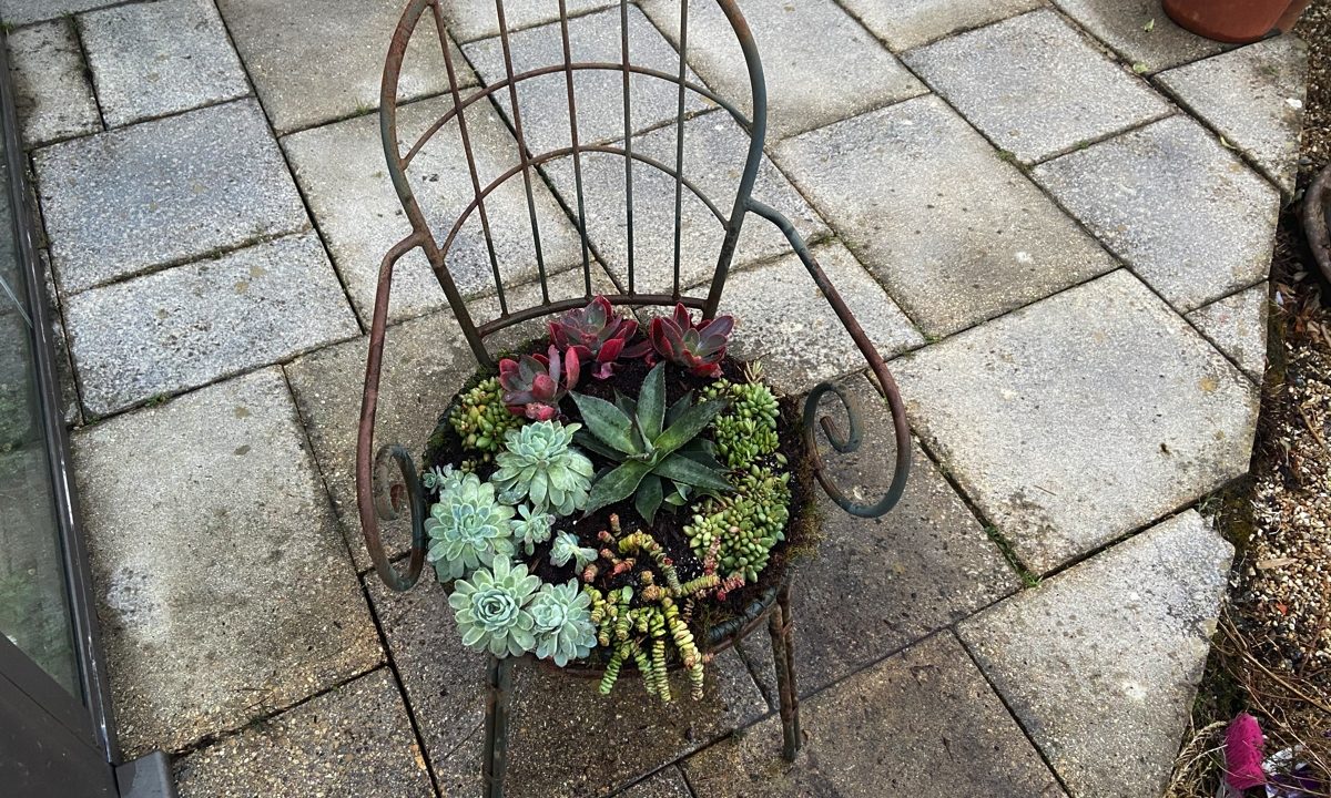Last year Liz made this stunning chair planted with succulents. It’s easier than it looks. Here’s how to do it.
