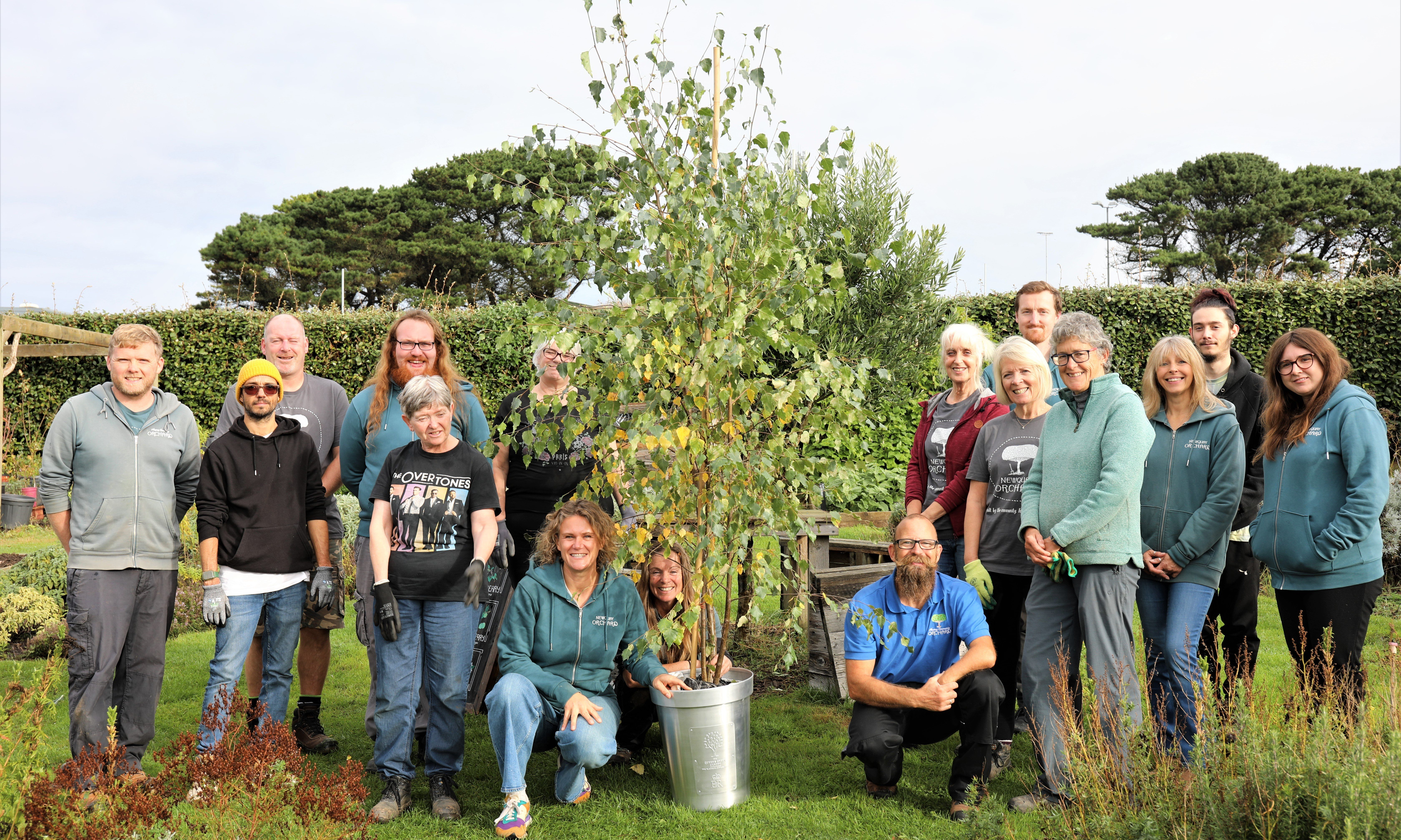 The team and volunteers at Newquay Orchard with their Platinum Jubilee tree.