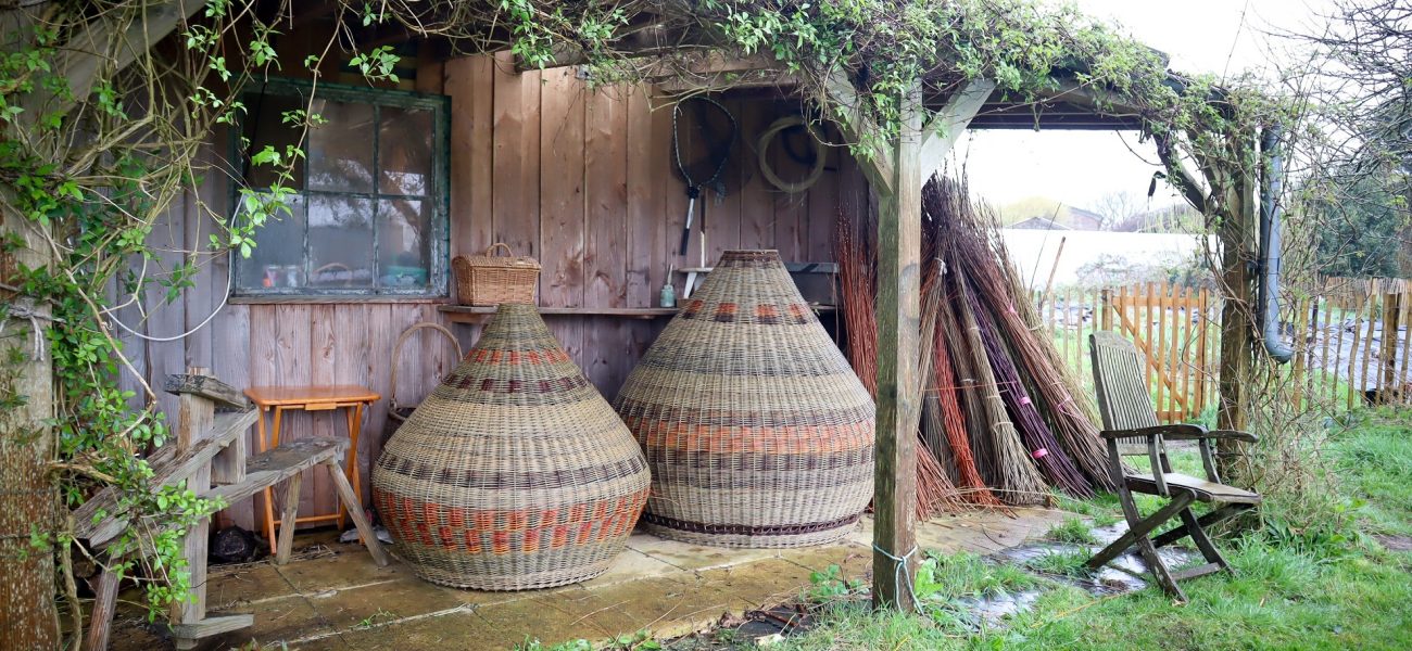 Here and now, in Cornwall, Lin Lovekin is making baskets her own way. If you look up as you enter the nursery building you will see the huge lampshades she made for us. They are as big as she could make them to get through her workshop doors!