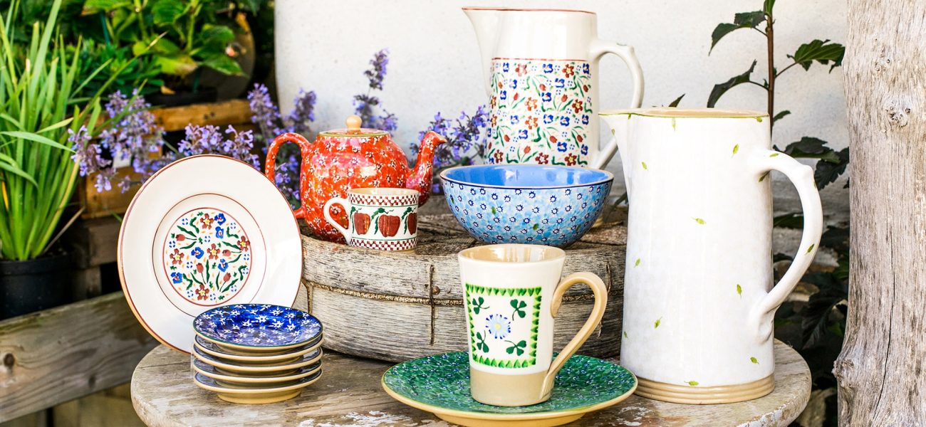 Nicholas Mosse produces beautiful, functional crockery in the style of Irish Spongeware, a traditional Irish form of pottery that was first used in the 18th century. Its visual style and application creates simple, honest shapes, with the makers using a cut sponge to apply the decoration.