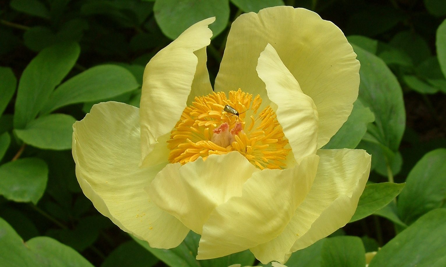Peonies have a long and illustrious presence in history, art and gardens. They appear in writings by Confucius as early as 500 BC. There are 33 naturally occurring species, mostly herbaceous, but the vast majority of peonies grown in gardens are named hybrids. The two species peonies most commonly grown in gardens are Paeonia officinalis and P mlokosewitschii, which is probably best referred to by its common name “Molly the Witch” (see image below).