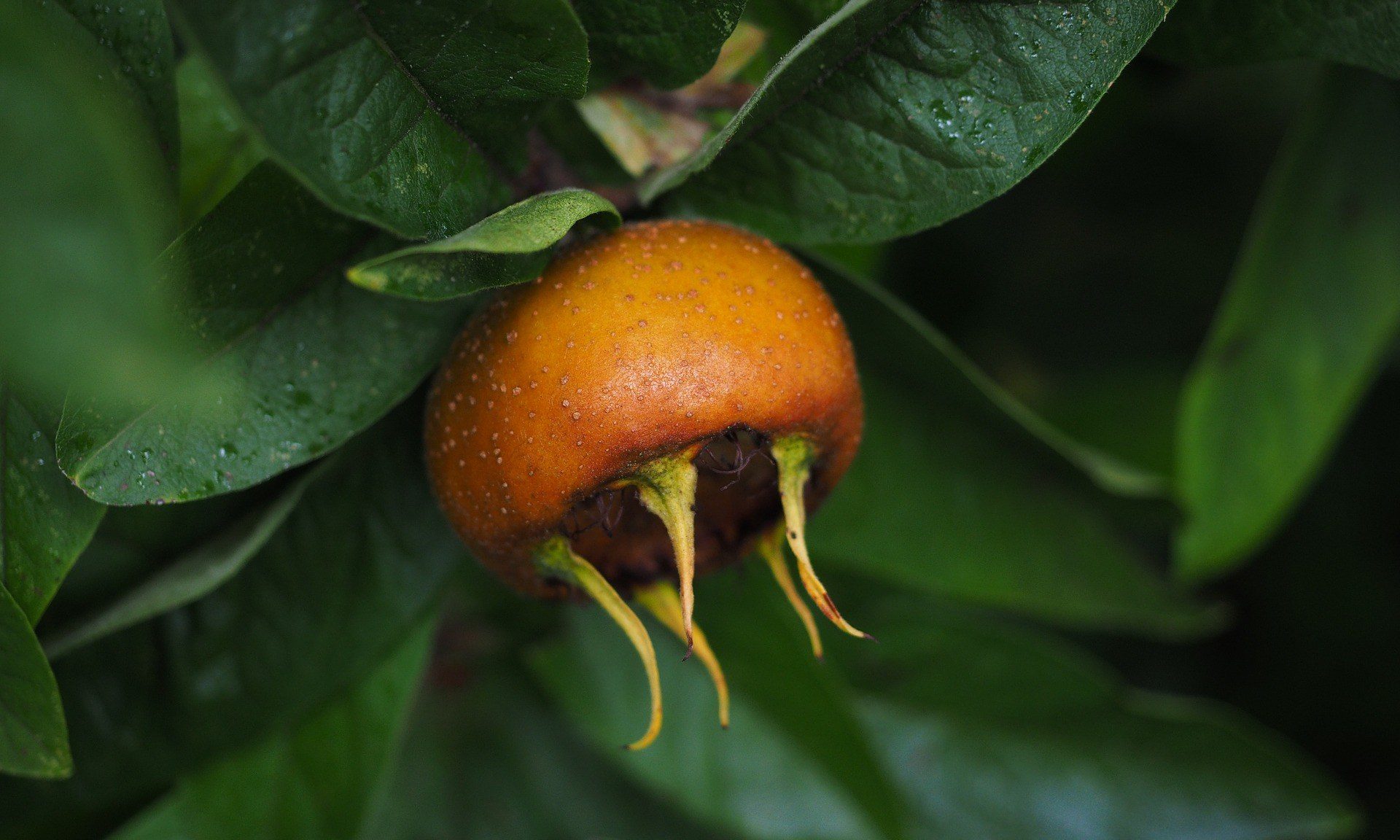 Rob has a soft spot for a medlar. These trees have been grown in gardens since ancient times but are less common now. Records show its presence in Greece around 700BC and in Rome in about 200BC. It was an important fruit plant here in medieval times and surely deserves to be planted more often. Medlars are excellent deciduous trees for a small garden reaching around 5m at maturity, and usually grown as a standard where the shape of the twisty spreading branches can be appreciated, particularly in winter. They are happy in most soils except shallow chalk, or waterlogged sites, and have good autumn colour. They are suitable for small gardens and work well as specimens planted in a lawn.
