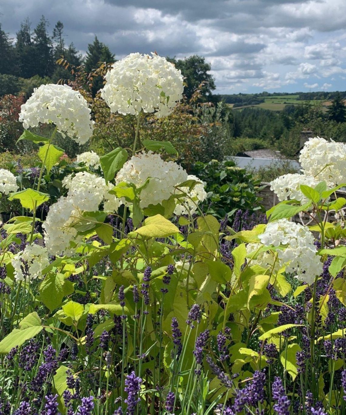 Hydrangeas can be divided into three groups for pruning. The first group is Hydrangea macrophylla, the common hydrangea (the “ordinary” one) with either mophead or lacecap flowers, and Hydrangea serrata. These hydrangeas flower on old wood, that is stems that grew the previous year, or years. The first thing to do is to have a good look at the plant, identify and remove any dead, diseased or damaged wood. The remaining stems are reduced by about 30cms, cutting above a pair of fat buds. These buds will develop into flowers in the coming season. On mature hydrangeas it is a good idea to remove some of the oldest stems to make room for new growth. Cut them off right at the bottom. You will often see new shoots already forming. This keeps the plant vigorous and healthy. If this is not done, the plant can become congested which makes it difficult to manage, and will result in a mass of smaller cramped flower heads. Old, neglected hydrangeas can become very tall and untidy, but all is not lost; cutting the whole plant right down to the base and starting again is the best option, though you will get no flowers in the coming year. It is good practice to apply some general purpose fertiliser as you prune. We use a handful of chicken manure pellets for each bush.