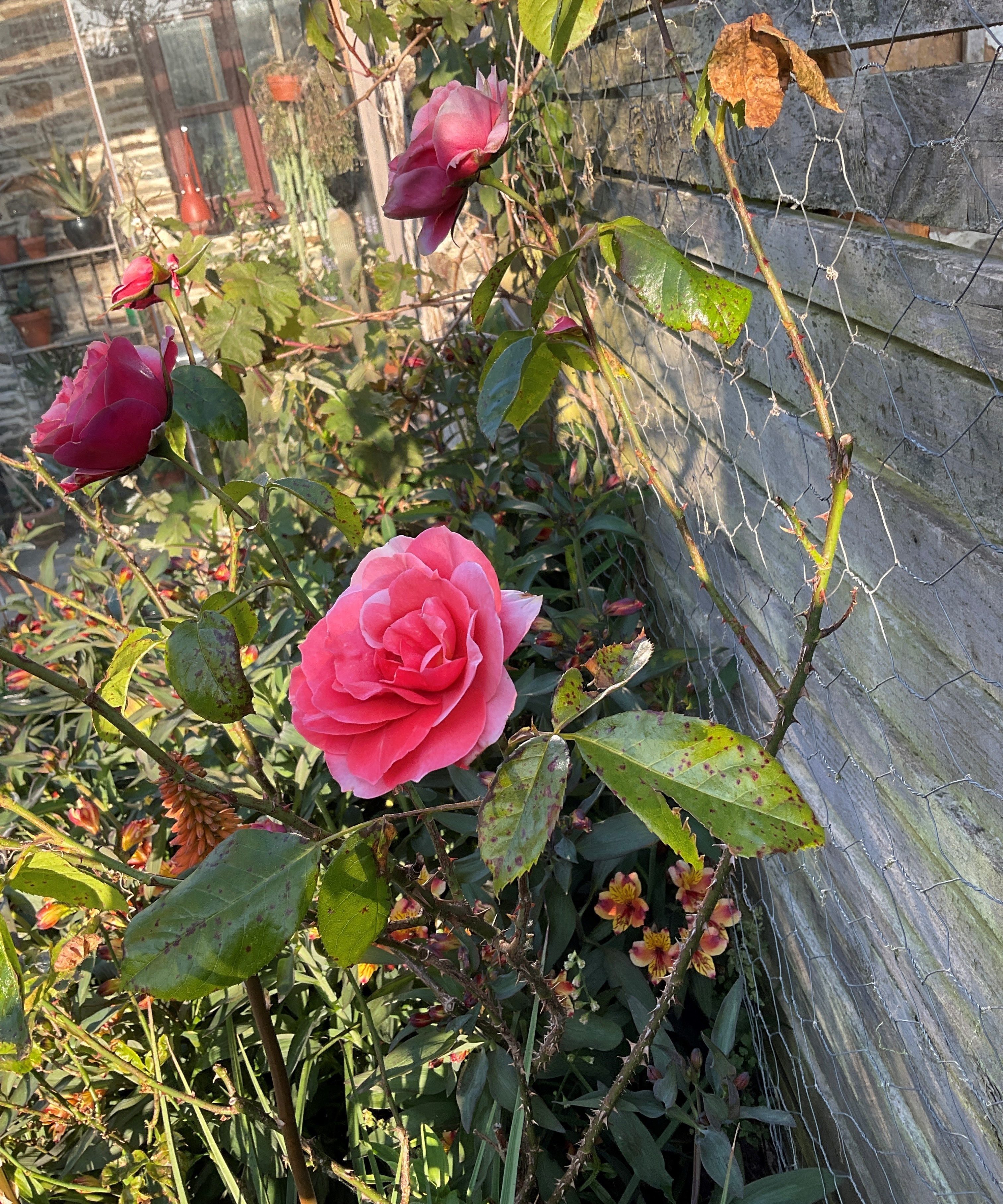 One of the most frustrating problems for the rose grower is blackspot. The fungus which causes blackspot, Diplocarpon rosae, is genetically diverse and mutates readily into new strains, just as influenza and coronavirus do in humans. Older rose varieties once proclaimed to be resistant may no longer have the resistance of newer cultivars, though species roses have greater natural resistance. There has long been a misconception that it is difficult to grow roses well in Cornwall because of the damp air and high rainfall, but problems can be minimised with careful selection of a suitable variety and good growing practices. The Nursery has produced a leaflet describing the roses we sell, all of which have been carefully selected as suitable for growing in Cornwall.