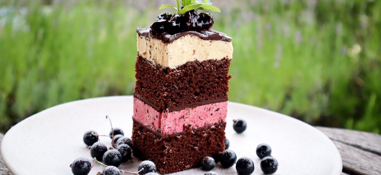 Double chocolate and blackcurrant cream cake (vegan)
