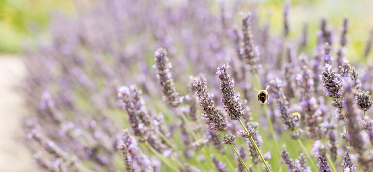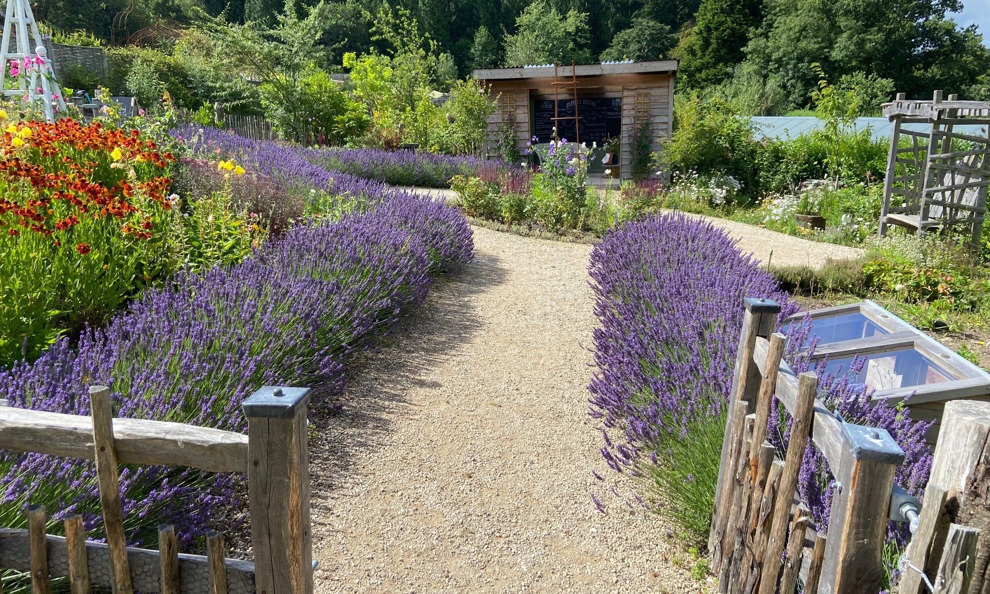 The nepeta in the central bed has been cut back hard. The whole bed has had a good feed with chicken manure pellets to encourage the nepeta and the roses to re-bloom. The sweet peas in this central bed are not looking as wonderful as they have in previous years, but nor are the sweet peas on the white obelisks. Conversations with visitors to the bumblebee garden often throw up common patterns. This year many people have been experiencing problems with sweet peas and tomatoes. Last year people struggled with runner beans, and cosmos. Unsurprisingly the most common topic of conversation at the moment is lavender, and how to grow and maintain it. Our regime is simple, we deadhead as the flowers go over, simply to tidy the plants up. In early spring the whole lot is pruned hard, but with care not to cut below visible green growth points. It is not fed at all.