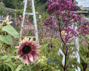 One plant which has perplexed us (and a number of our customers) this year is Cosmos. It is normally easy, reliable and produces loads of flowers for minimal effort. We start the seeds off in April under glass and expect the first flowers in July. This year some of the plants have grown and grown but produced no flowers until September. A possible explanation for this year’s late flowering is that the cold, late spring slowed the growth of the young plants. Another possible explanation is that many of the seeds available in this country are actually grown abroad in warmer climates. It may be that these seeds are better adapted to warmer conditions, and take longer to bloom in our chillier summers. In my own garden I have a Cosmos Purity which reached 197 cm when the first flower opened on 7th October. It was sown in a greenhouse on 7 April – exactly six months earlier. Maybe we should all be saving seeds from our Cosmos which flower on time.