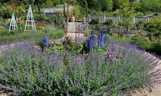 Before this becomes too gloomy, there have been triumphs. Lupins have all but taken over one corner of the garden, being in bloom continuously for months (with regular deadheading). The Nepeta Six Hills Giant has flowered spectacularly twice each summer, and Lavender Grosso has impressed all who see it. Verbena Bampton with its aubergine coloured foliage has created interest too. We grow sweet peas every year, and have found Gwendoline is a star performer with fragrant and vigorous pale pink flowers on long stems for cutting. Matucana has smaller bi-coloured flowers with an intense fragrance, and a longer season than any other variety we grew. Of the other annuals we grow, Echium vulgare Blue Bedder, Cerinthe major purpurascens attract attention with their vivid blue flowers. Malope Vulcan and Lavatera trimestris New Dwarf Pink Blush have wowed in the pink shades. All these annuals are easy to grow and highly recommended.
