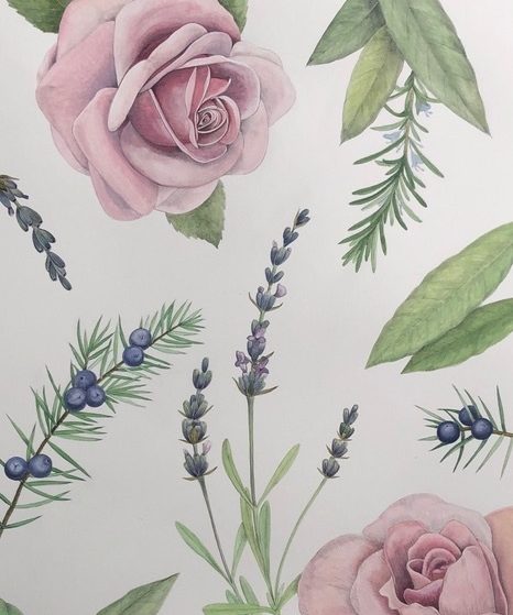 “I have steered my illustration towards a delicate pencil and watercolour, influenced by Pierre-Joseph Redouté a much respected botanical painter of the 1700’s, and an undisputed master of floral art. Redouté was often remembered for his extensive collection of Rose illustrations. His work came with great distinction which earned him many paintings commissioned by the French Royals”.