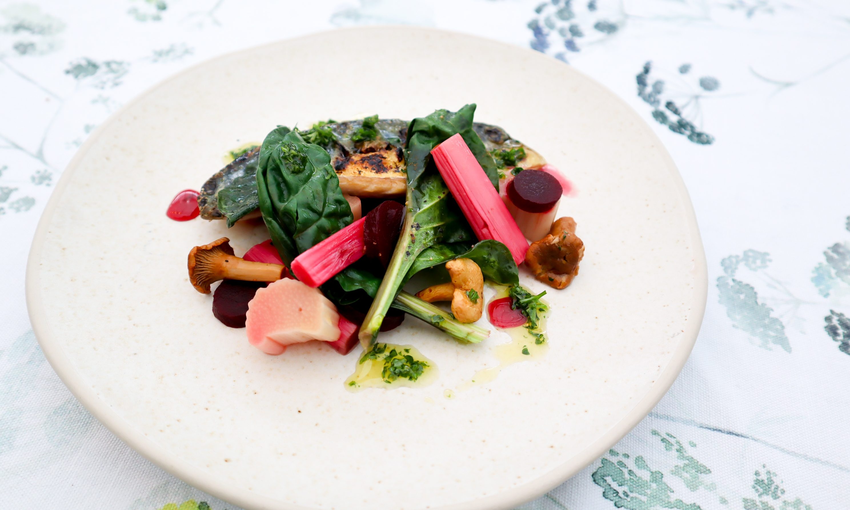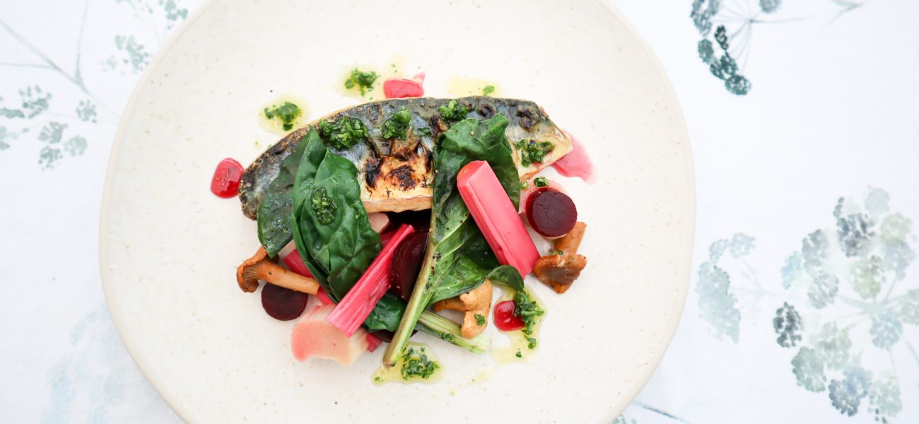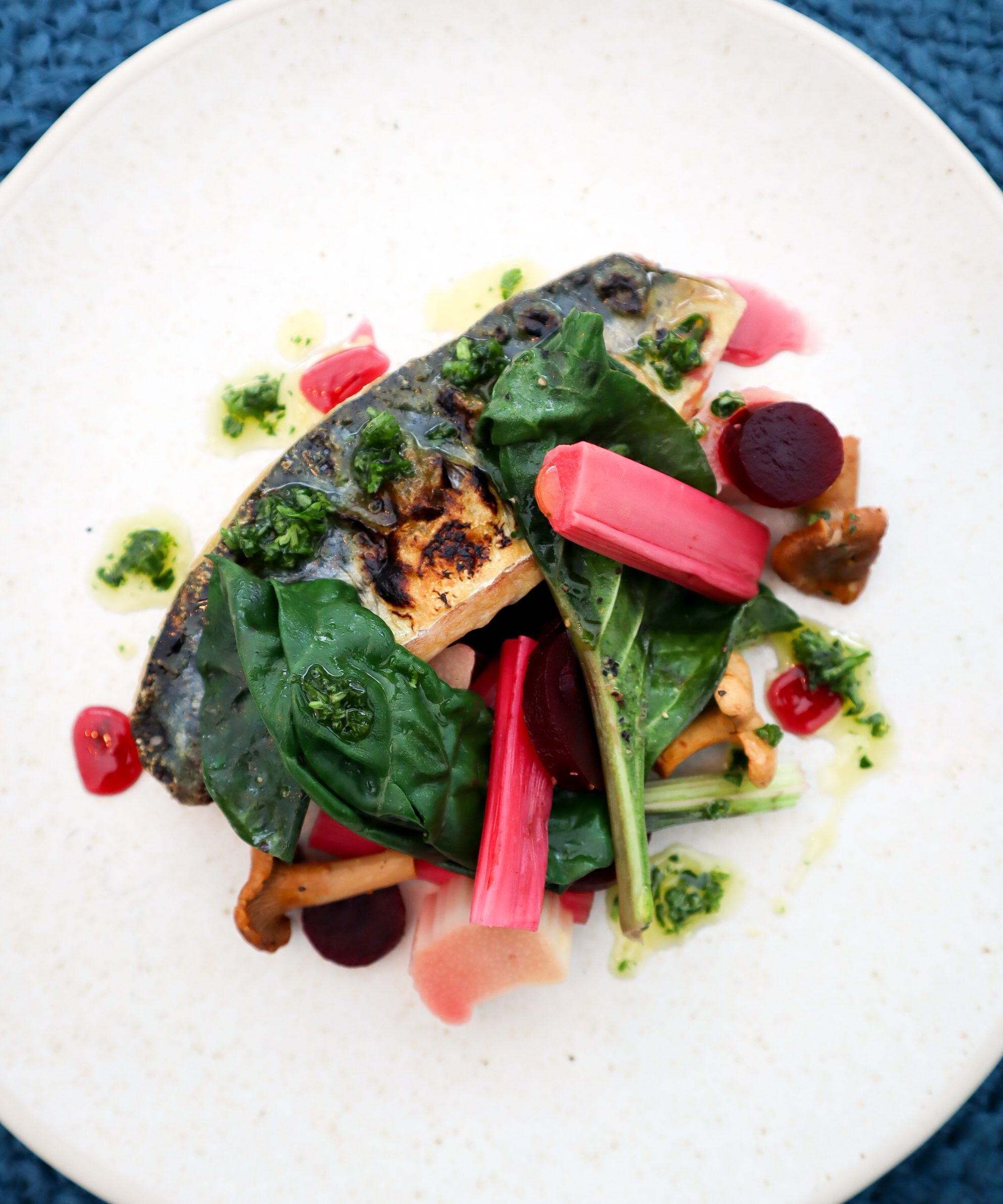 Dish- Charred Cornish mackerel, rhubarb, beetroot & chard