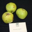 Dessert/Cooker. Tolerant of high wind and rainfall. Green fruits. Keeps its shape when cooked. Period of use from November to January. Dessert apple by Christmas. Pollination Group 4-5.