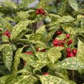 Medium sized evergreen shrub. Large, shiny leaves splashed with gold. A shade loving plant, thriving in almost any soil or situation. Drought tolerant. Height 2m.