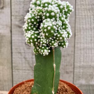 A grafted form of the 'Coral Cactus' which makes a beautiful and unusual house or conservatory plant. Place in a well lit position with sun and allow compost to dry in between waterings. As with other cactus, care must be taken not to overwater. Keep dry in winter and protect from frost. Pot on when potbound using a cactus compost.