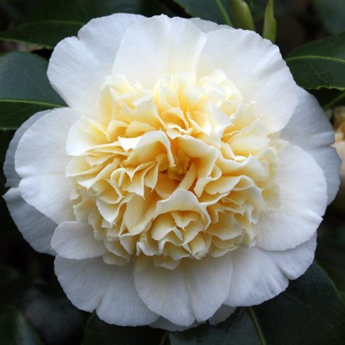 Large evergreen shrub. Cream peony flowers with yellow shading. Unusual. Best in acid soil in shade or semi-shade. Good coastal plant. Height 3m.