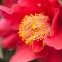 Evergreen shrub of upright bushy habit. Red with yellow stamens semi-double flowers. Needs acid soil in a sheltered semi-shaded or shaded position. Height 2m.