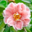 Large evergreen shrub. Medium sized semi-double flowers, pink with a white margin. Needs acid soil and some shade. Good coastal plant. Height 3m.