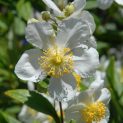 Slightly tender evergreen. Large white flowers in July. Needs the protection of a warm wall. Best in well drained soil in full sun. Height 2m.
