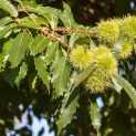 Sweet Chestnut. Fast growing deciduous tree. Yellowish catkins, very ornamental in July. Good crop of nuts after hot summers. Any soil sun or shade. Height 18-20m.