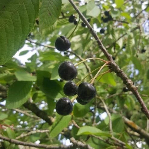 A Tamar valley Black Cherry, juicy and sweet fruit which is very split resistant. Suitable for both eating and cooking. Ripens late July. Self fertile on Colt Rootstock.
