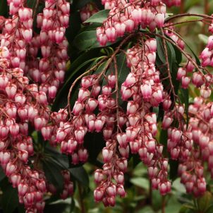 Distinctively coloured evergreen bearing fragrant white flowers in spring and early summer. Any well drained moist soil in sun or shade. Height 1½m.