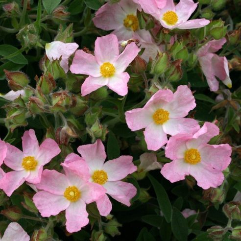Evergreen shrub bearing a succession of pink papery flowers all summer. Good coastal plant. Any well drained soil in full sun. Height 60-90cm.