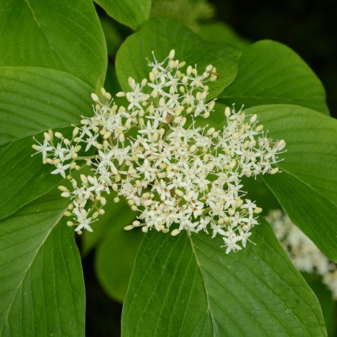 Elegant deciduous small tree with sweeping layered branches. The tiered appearance makes a great focal point in large gardens. Clusters of small cream flowers in May. Purple-red autumn colour and blue/black berries. Any fertile well drained soil. Sun or part-shade. Height 10-15m.