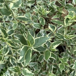 Evergreen shrub with interesting stems. Tiny leaves with purple-bronze tinge. Orange berries in autumn. Good coastal plant. Best in full sun in well drained soil. Height 1-1.2m.