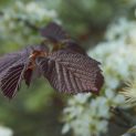 Corkscrew Hazel. A large shrub composed of curious twisted branches which is most striking in winter.Eye-catching purple foliage, purple catkins in spring before the leaves appear. Any good soil. Best colour in sun or light shade. Height 2m.