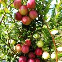 Cranberries are mostly grown for tart, dark red berries in August which are packed with vitamins and nutritions. They have tiny pink/ red flowers in spring. This hardy evergreen shrub is low growing (30cm tall) and has an arching habit (45cm wide), so ideal for growing in pots. Best grown in moist free-draining acid soil in full sun.