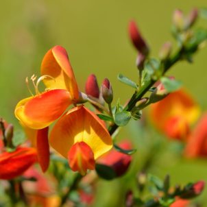 Erect deciduous shrub. Yellow to bronze, cup shaped flowers lasting well. Autumn colour, from red to yellow is outstanding. Acid soil in sun or shade. Height 2m.