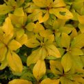 Striking small evergreen shrub with large glossy gold and green leaves and large deep pink flowers in summer. Any well drained soil in full sun. Good coastal plant. Height 1-2m.