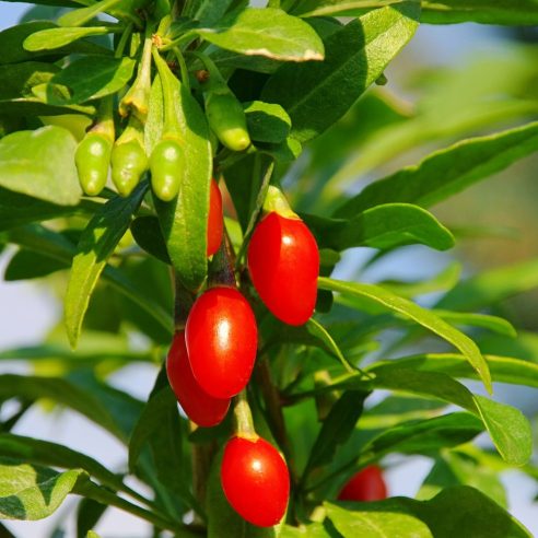 Hardly new and first introduced into the UK in the 1600's. Forgetting all the health benefits of Goji's, they are a lovely bright orange-red fruit. Eat them fresh (shake them from the plant to prevent your hands oxidising them and making them go black), or dry them and eat them like sweets or add them to muesli to make your breakfasts power packed. Self fertile and hardy to all extremes of climate -15°C - +40°C and drought tolerant as well. A single plant will produce over 2lbs (1kg) of berries in it second year.