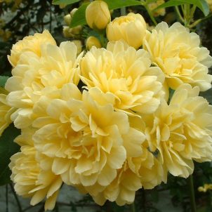 Happy Wanderer, Vigorous scrambling climber. Pendent panicles of deep violet-mauve pea-like flowers with yellow markings. Best in moist, well-drained acid soil in sun or light dappled shade. Best as a conservatory plant. Probably hardy in mild or coastal gardens. Height 2-3m. Minimum winter temperature 7ºC.