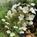 Deciduous shrub with oak shaped leaves. Striking white flowers in summer turning soft red. Any good soil in part shade. Good autumn colour. Height 0.9cm Spread 1m.