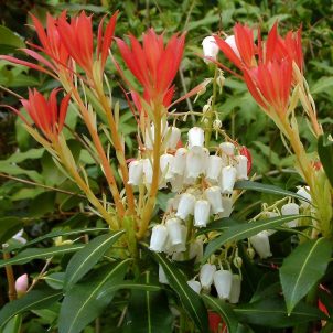 Lacecap. Deciduous shrub with dark purple-brown stems. Pretty pink flowers in alkaline soil or blue in acid soil, star-shaped flowers. Any moist soil in part-shade. Good coastal plant. Height 1½m.