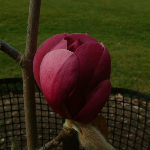 A relatively new hybrid from New Zealand, with deep purple goblet shaped flowers on the bare branches in spring. This colour is more intense than M. 'Vulcan', which is one of the parents. Grow in acid soil rich in organic matter, in sun or part shade.