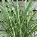 Porcupine Grass. Dense clumps of narrow green leaves with horizontal cream banding. Sun or part shade in any good soil. Height 1.8m.