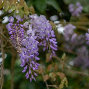 Beautiful climbing plant suitable for a warm wall. New form (2001) with larger flowers and stronger growth. Blue and white intricate flowers all summer. Any soil. Plant in full sun for best colour. Height: 4 -5m.