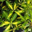 Mock Orange. Deciduous shrub grown mainly for golden foliage with the bonus of creamy-white scented flowers in summer. Prune out old shoots after flowering. This cultivar tends to scorch in a hot sunny position so best in shade. Moist well drained soil. Height 2m.
